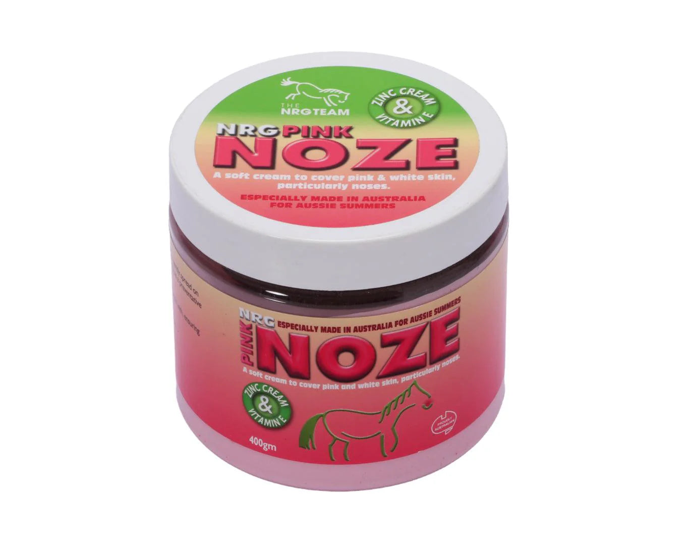 Protect your horse's sensitive pink noses with NRG Noze Cream, a soft Zinc cream enhanced with Vitamin E. Specifically formulated for horses with pink and white skin, this cream provides essential sun protection while soothing and nourishing damaged areas. Developed and tested by the NRG Team on their own horses, this Australian-made product is perfect for the harsh Aussie summers. Easy to apply, it creates a protective barrier against harmful UV rays and environmental irritants. Ensure your horse stays comfortable and protected, shop now for the ultimate in equine skin care!
