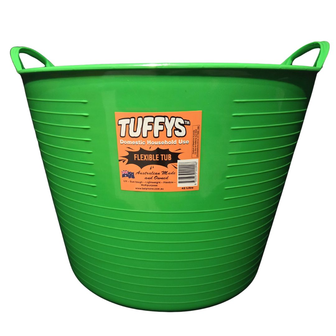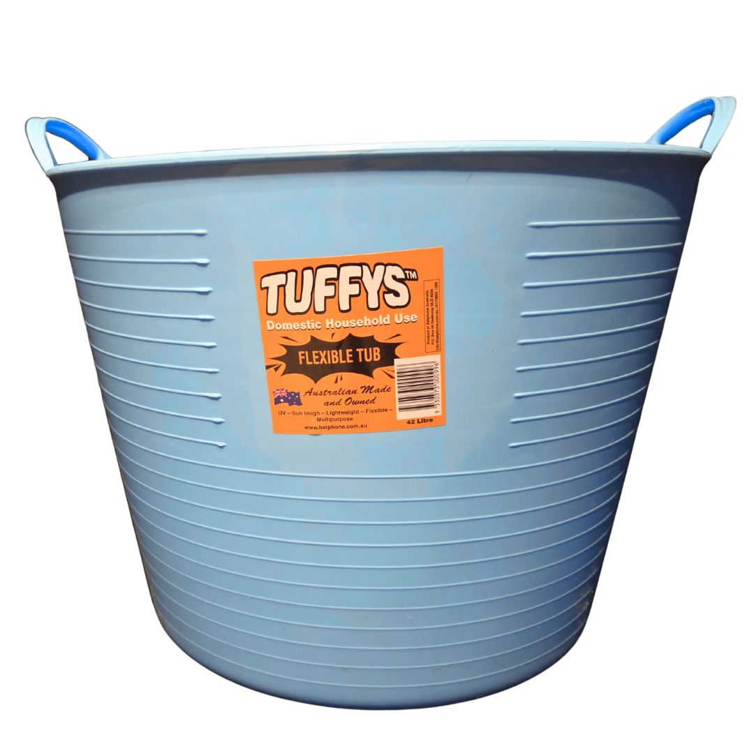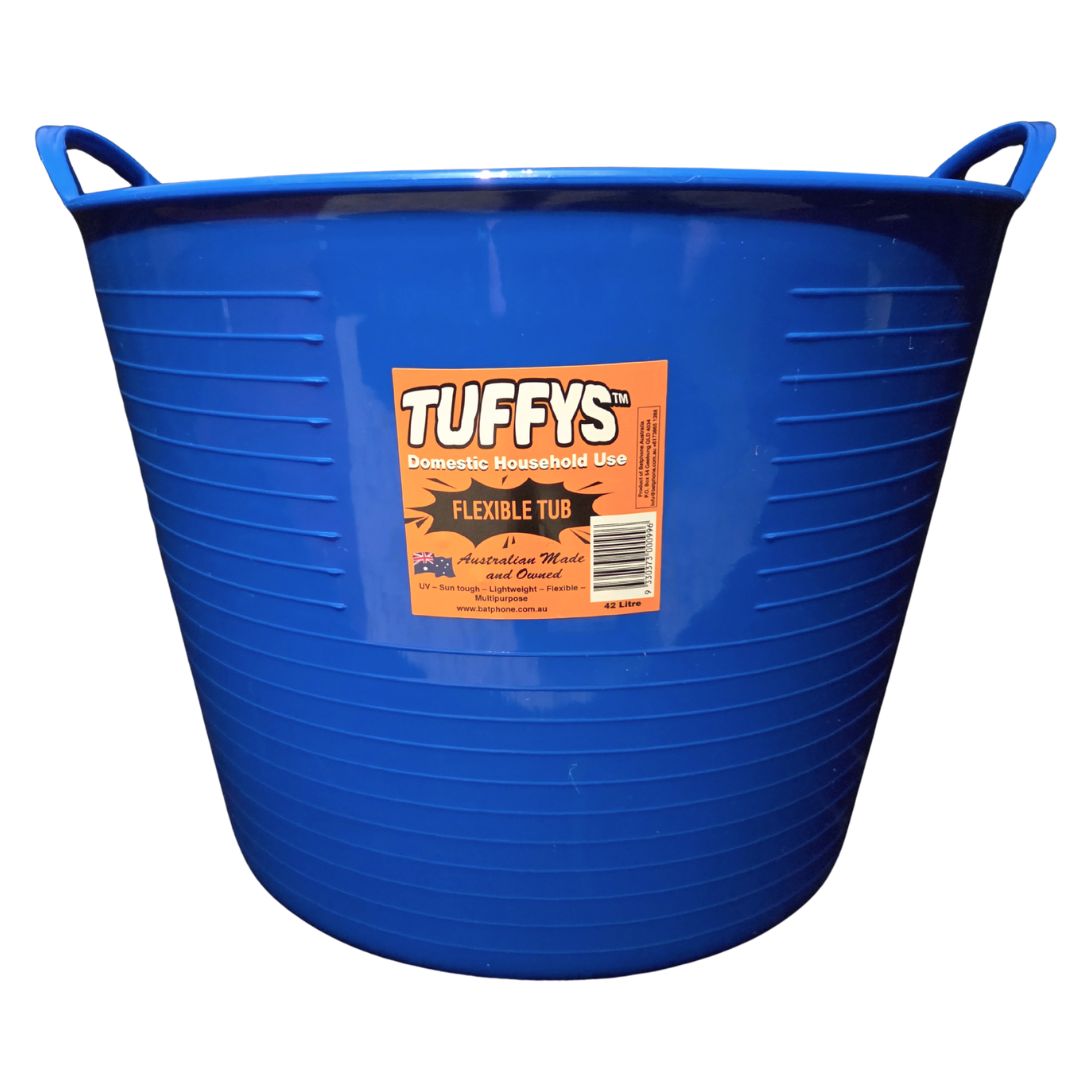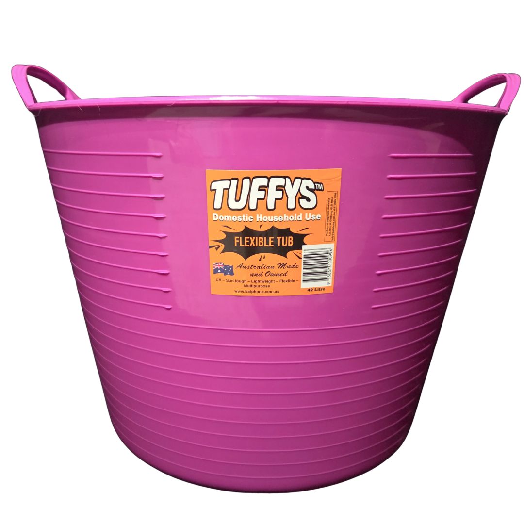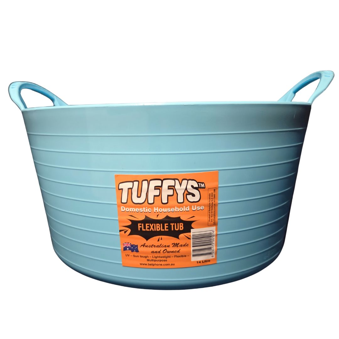 Tuffys is an Australian manufactured range of flexible tubs, buckets and pails that are designed to be durable. The Tuffys range has a multitude of uses, including equine feeding and storage of items around the stable. Tuffys come in a great range of colours.